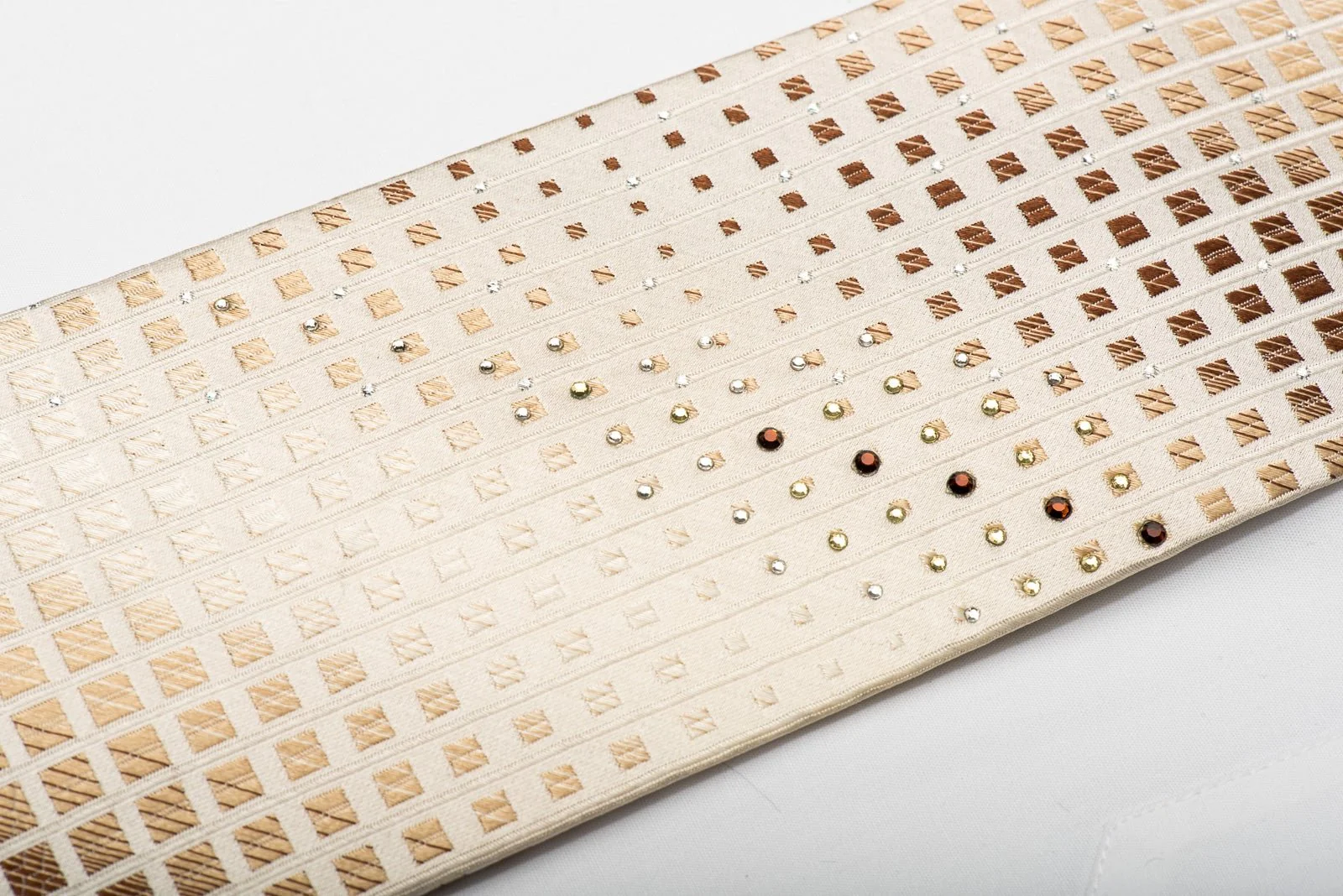 Stylish men's silk necktie perfect for every occasion handmade from the finest quality silk and designed by top brand name Austin Reed. Presenting an elegant design with brown Squares on beige woven silk, sparkling with clear white, brown crystal Rhinestones with silver sparkles.