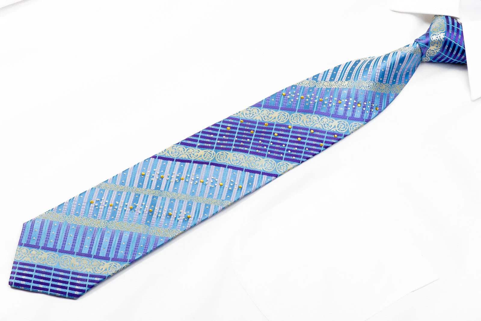 Avolio Rhinestone Necktie Purple Striped Cartouche On Pale Blue With Sparkles