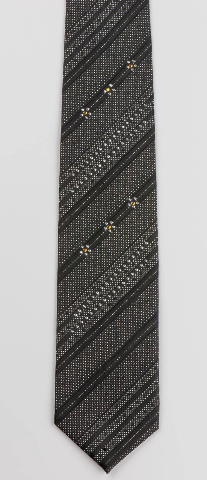 Avolio Silk Tie Silver Stiped Sparkles On Black With Rhinestones Necktie