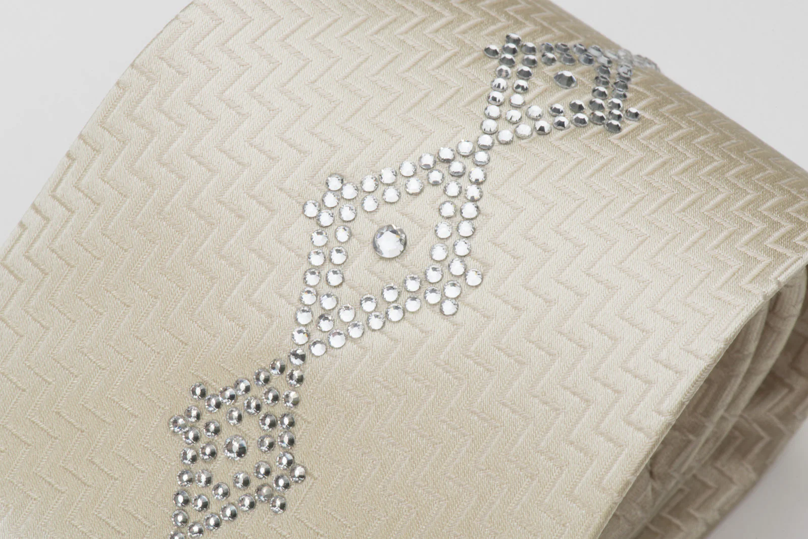 Lalanta Silk Tie Geometric Strass Diamante Crystal Rhinestone Design On Ivory Cream