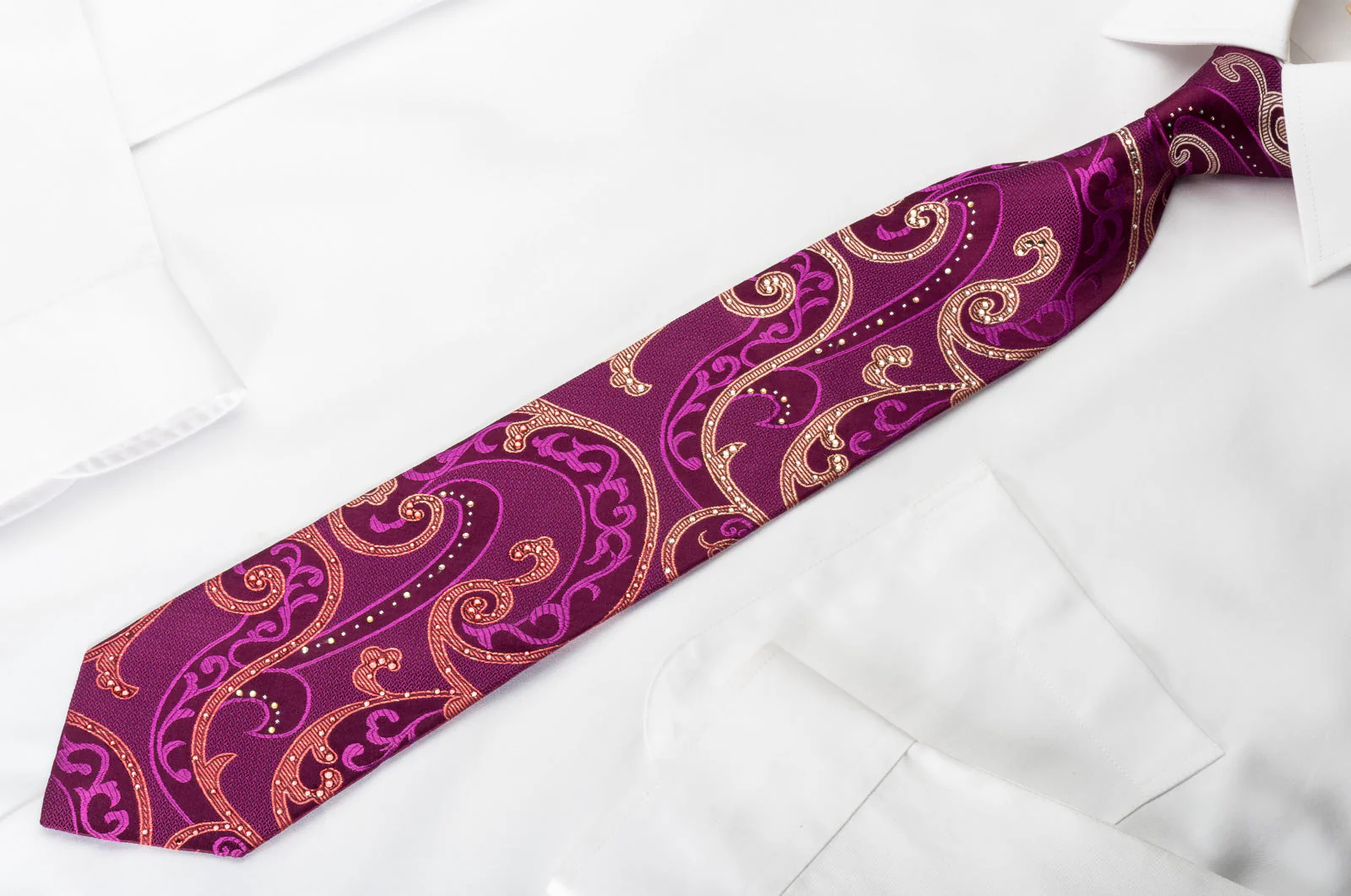 Lancetti Silk Rhinestone Necktie Vines On Purple With Silver Sparkles