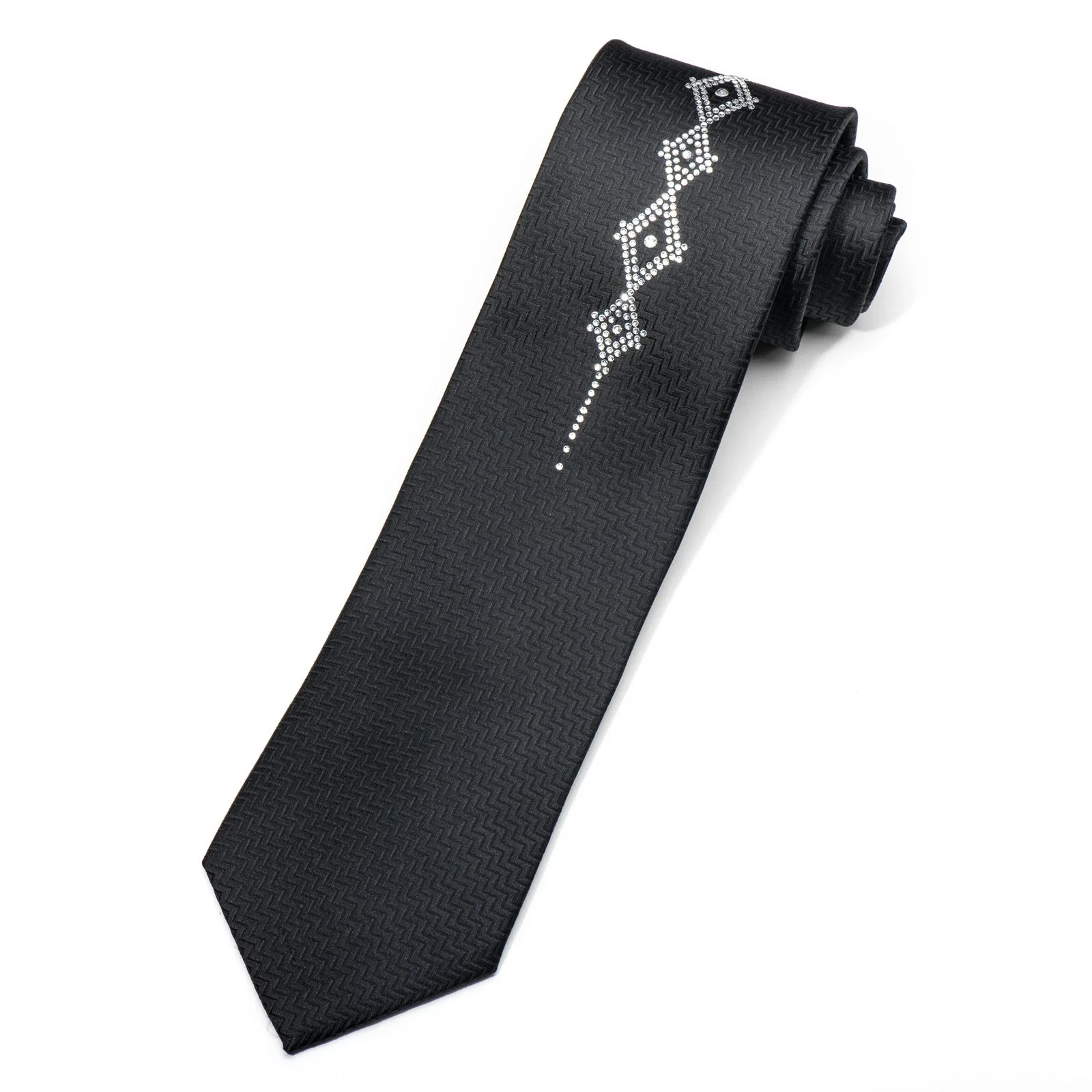 Men's Black Silk Tie Geometric Crystal Design Rhinestone Necktie By Lalanta