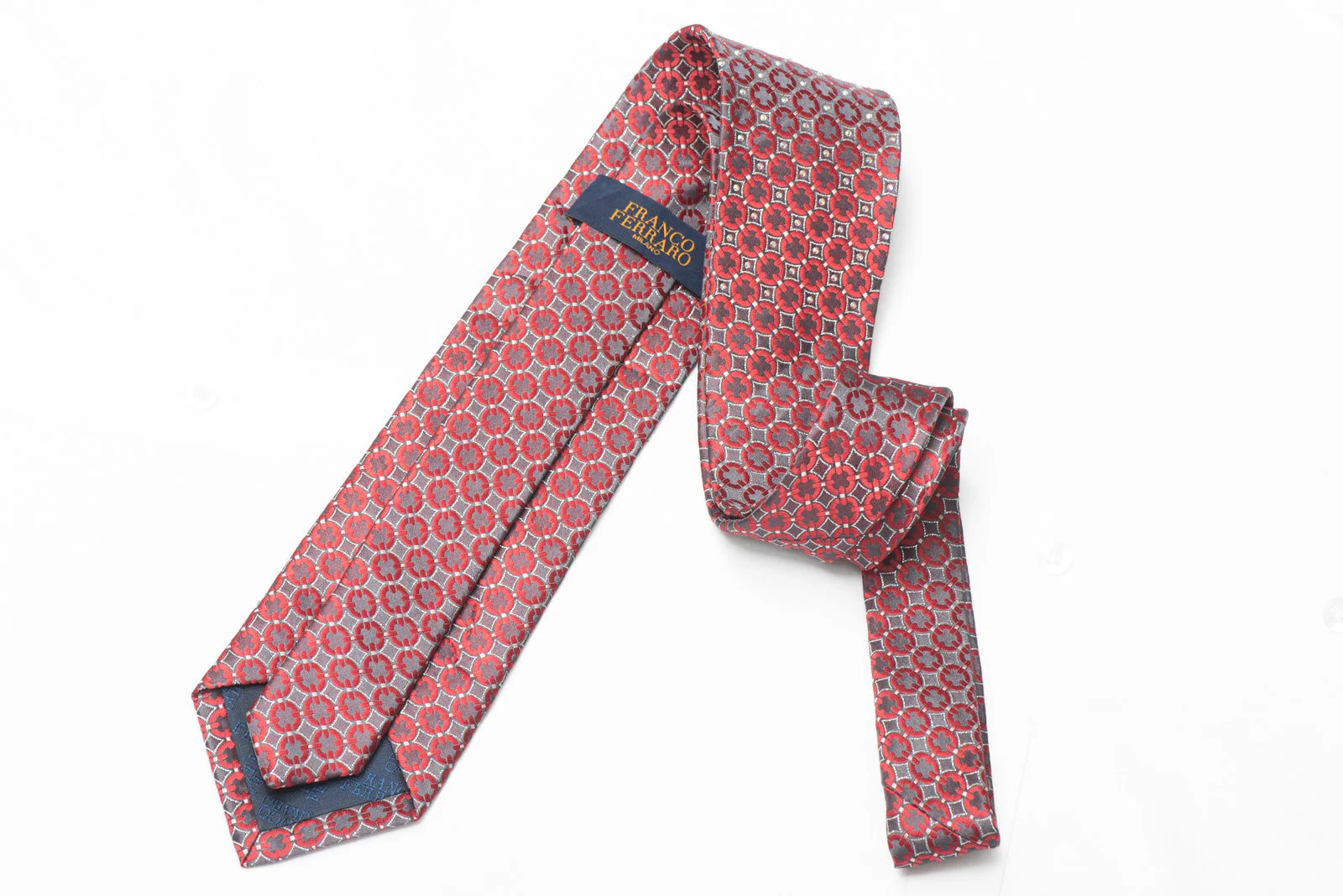 Looking for a stylish accessory that will make a statement? This Silver Burgundy Geometric Rhinestone Silk Necktie is the perfect choice. With silver sparkles adding a touch of glamour, this tie is sure to elevate any outfit.