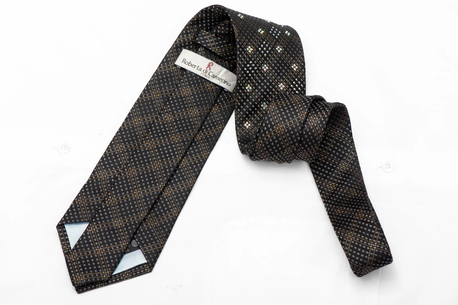 Silver Gold Checkered Geometric On Black Sparkle Tie With Sparkles